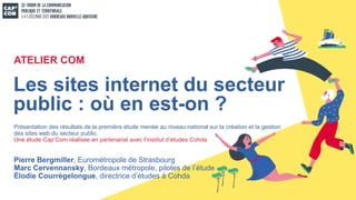 Une étude nationale sur la création et gestion des sites web des collectivités publiques a révélé que 81% des sites sont responsives et que WordPress, Drupal et Typo3 sont les CMS les plus utilisés. La majorité des répondants (64%) confient la maintenance de leur site à l'agence qui l'a réalisé et 78% sont satisfaits des prestataires. À court terme, 40% des organismes envisagent une refonte ou amélioration de leurs sites, tout en reconnaissant l'importance d'intégrer les usagers dans leurs projets futurs.