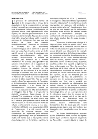 L'étude examine l'effet de NT-020 (Nutrastem), un nutraceutique combinant des polyphénols de myrtilles, du thé vert et de la carnosine, sur la neurogenèse et les performances cognitives des rats âgés. Les résultats montrent une amélioration significative de la prolifération cellulaire et des performances dans un labyrinthe d'eau de Morris chez les rats traités, par rapport aux témoins. NT-020 semble atténuer les impacts du vieillissement sur la mémoire spatiale et réduire l'inflammation.