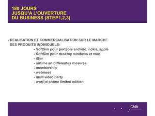 Le plan de développement Momentum 2012 se concentre sur la création d'un réseau de vente pour le système Wor(l)d, avec divers produits et outils destinés aux affiliés. Il inclut des programmes de marketing relationnel et des solutions de télécommunication uniques, telles que le 'communicate pack' et le 'technology pack'. Enfin, il met en avant un plan de compensation innovant offrant des paiements instantanés et un revenu résiduel basé sur les abonnements mensuels.