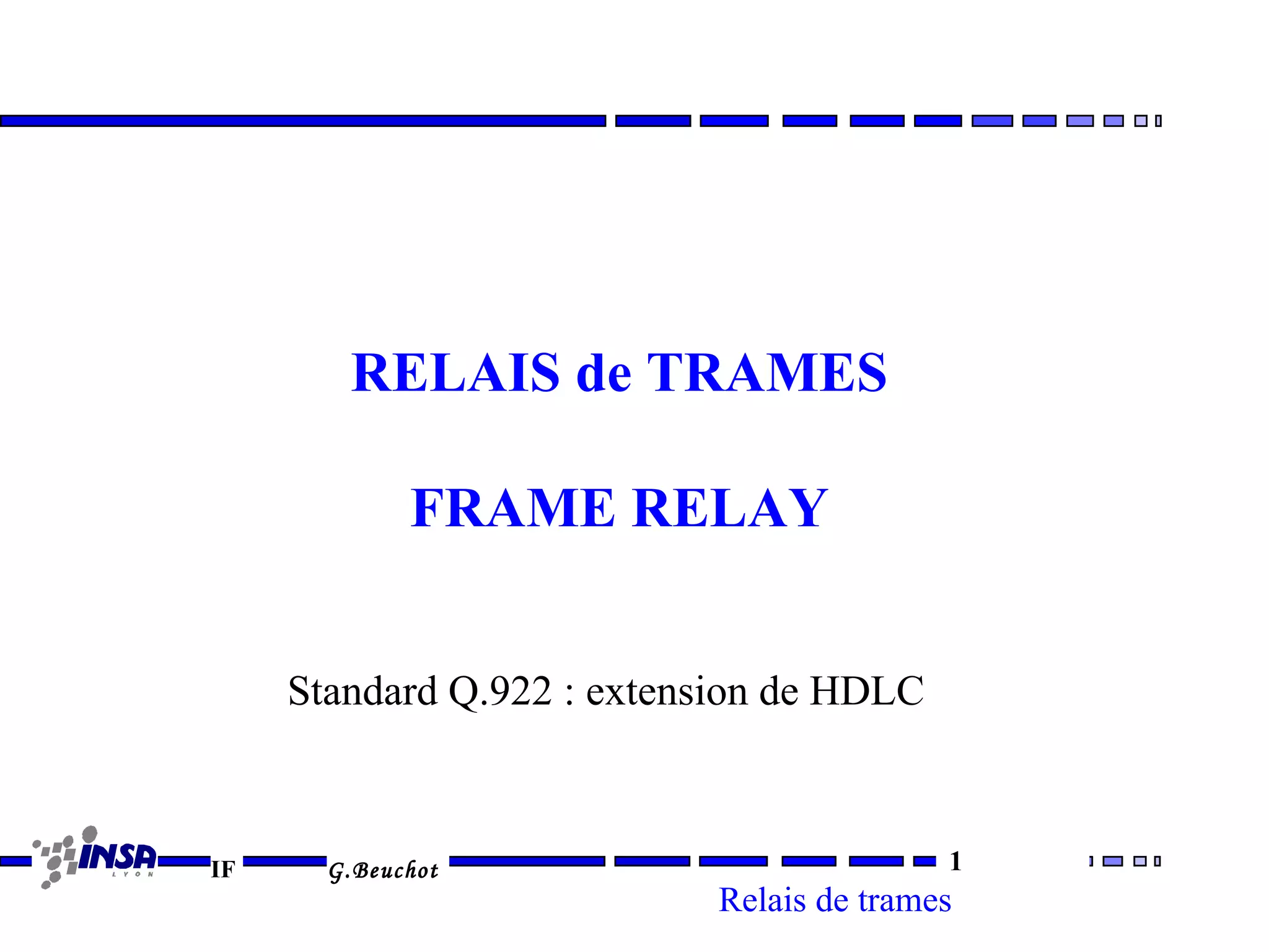 Le document traite du relais de trames Frame Relay standard Q.922, qui est basé sur le protocole HDLC et améliore la commutation de paquets en optimisant l'adressage et le routage au niveau 2. Il aborde également les concepts de Data Link Connection Identifier (DLCI) et de contrôle de congestion pour garantir la fiabilité des informations. Enfin, le document mentionne l'importance des infrastructures numériques et des fibres optiques dans la réduction des taux d'erreur.