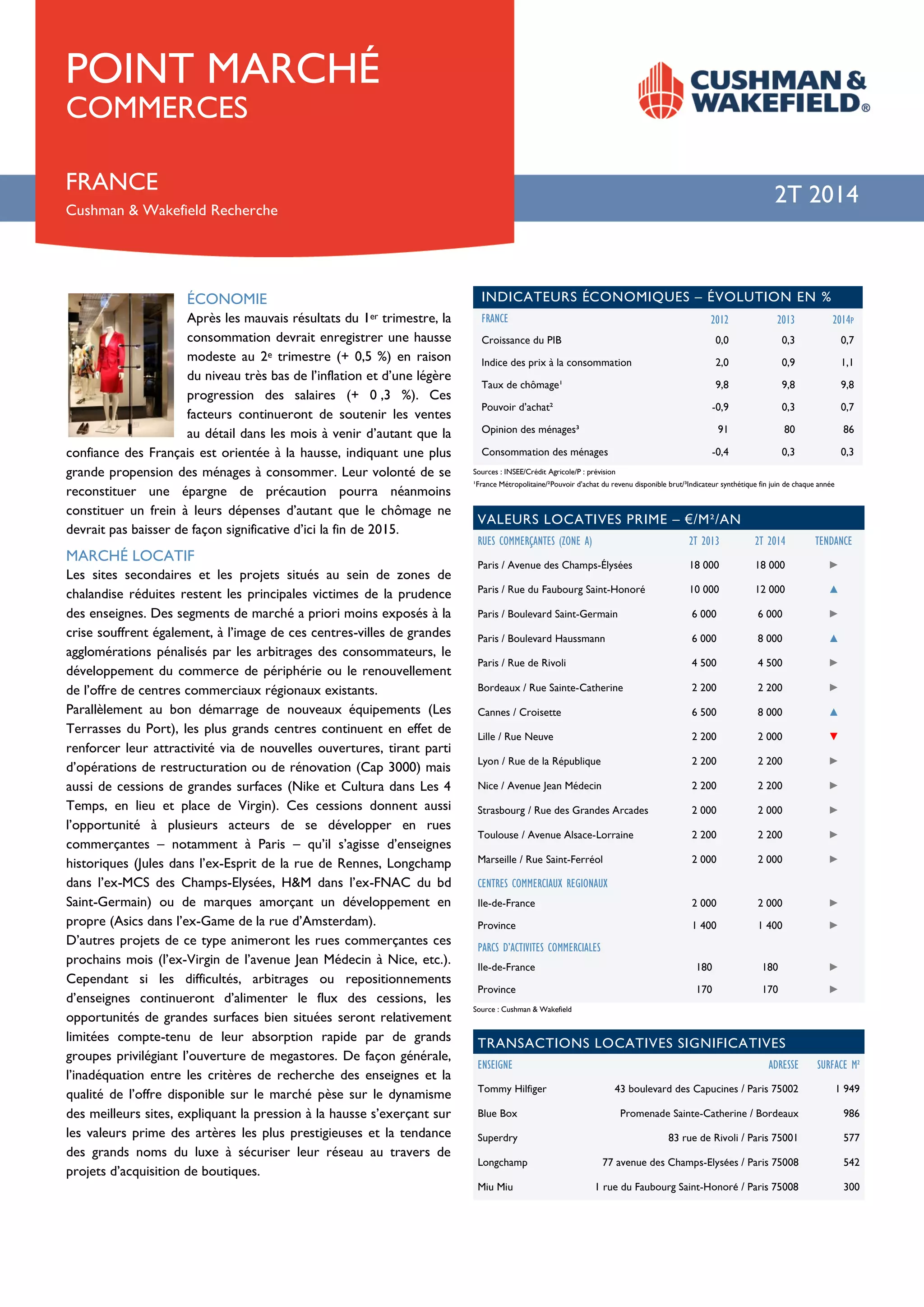 Après un premier trimestre difficile, une légère hausse de la consommation est prévue pour le deuxième trimestre, soutenue par la confiance des consommateurs et des salaires en progression, bien que le chômage risque de freiner les dépenses. Le marché locatif subit des pressions, notamment dans les zones secondaires, tandis que les grandes enseignes cherchent à renforcer leur présence via des projets de restructuration et des cessions. Les investissements dans le secteur commercial ont augmenté de façon significative, atteignant 4,2 milliards d'euros, avec des transactions majeures illustrant l'attractivité des boutiques situées sur les meilleures artères.