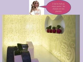 Le document décrit les différentes pièces et éléments d'une maison, incluant le hall, la chambre, la douche et la piscine. Il mentionne également des activités de loisirs, telles que des 'pool-parties' et des fêtes dans une discothèque à domicile. L'auteur exprime un sentiment de joie et de satisfaction concernant leur style de vie et leur maison.
