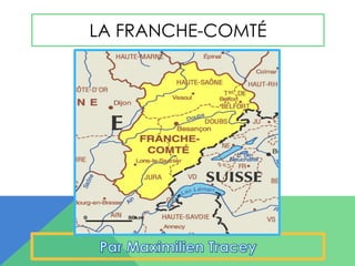 La Franche-Comté est une région située à l'est de la France, connue pour son climat frais et ses montagnes Jura et Vosges. Elle est réputée pour ses fromages, ses viandes et ses attractions touristiques comme les cascades d'Hérisson et le Saut du Doubs. Les villes importantes, telles que Besançon et Belfort, sont également des points d'intérêt pour les visiteurs.