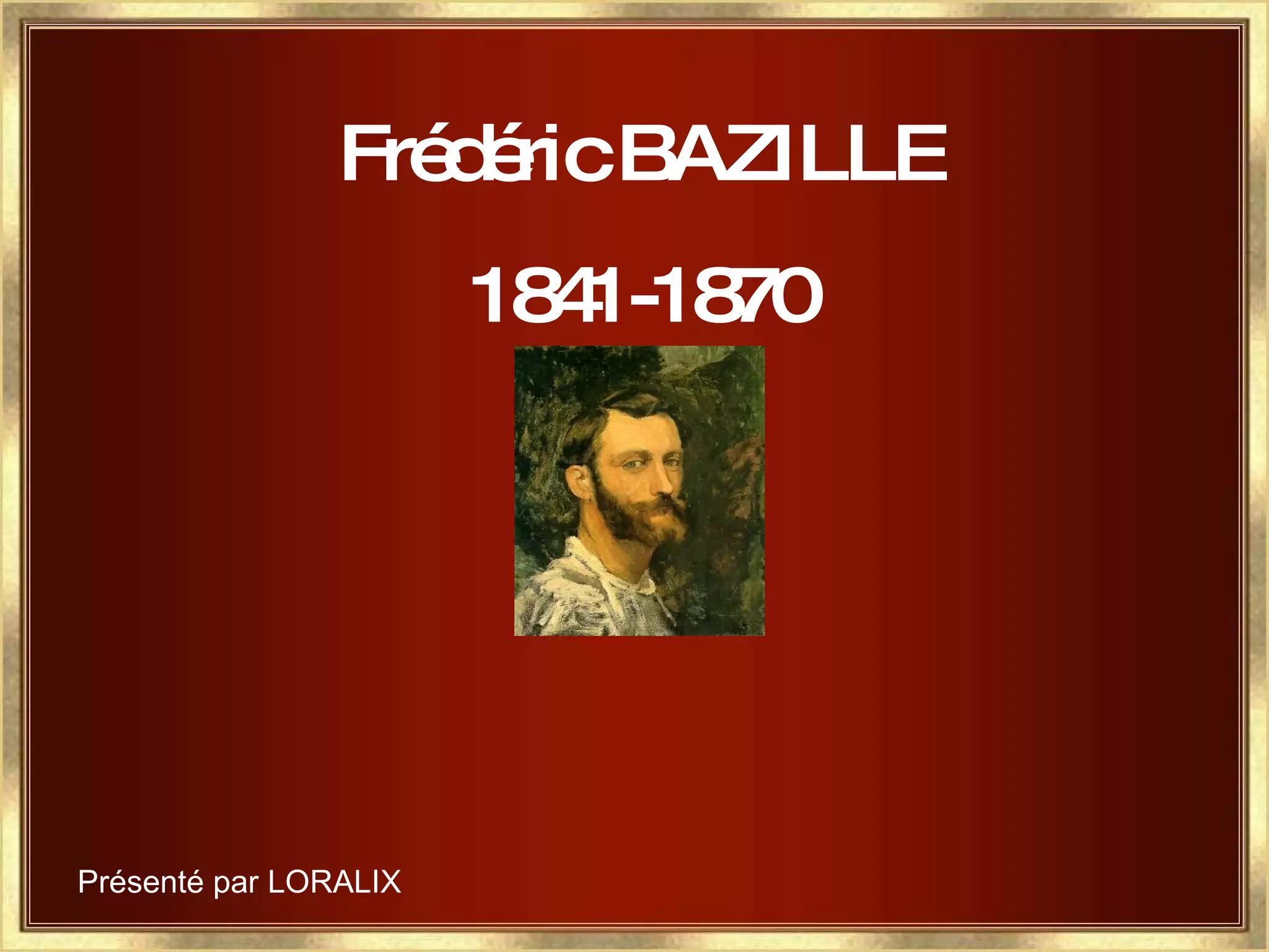 Frédéric Bazille (1841-1870) était un peintre impressionniste français, connu pour ses portraits, né à Montpellier dans une famille protestante. Il a étudié la médecine tout en fréquentant l'atelier de Charles Gleyre à Paris, où il a rencontré d'autres grands impressionnistes comme Monet et Renoir. Son travail a été exposé au Salon, mais certaines de ses œuvres, comme 'La Toilette', ont été refusées.
