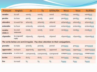 Le document traite de divers aspects de la culture et de la langue françaises, incluant des informations sur la France et le Canada, ainsi que des points grammaticaux essentiels tels que les articles, la possession et la conjugaison des verbes. Il fournit également un vocabulaire sur les lieux, les cours et les tâches ménagères, accompagné de conseils pour réussir un examen et éviter des erreurs courantes. Enfin, il aborde la formation de phrases en posant des questions et en exprimant des préférences.
