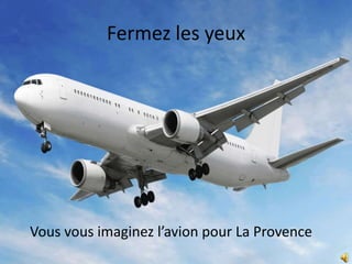 Le document décrit un voyage en Provence, en commençant par l'atterrissage à l'aéroport de Nice. Il évoque les pensées et l'imaginaire associés à ce trajet. Ce voyage promet de belles expériences à venir.
