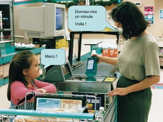 Le document est un dialogue où une personne demande 200 grammes de pommes et une bouteille de Coca-Cola. Elle s'enquiert également du prix d'un kilogramme de légumes. Enfin, la conversation se termine par des remerciements et des adieux.
