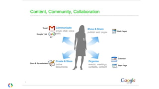 Le document présente le Google Apps Developer Challenge (GADC) de 2012, un concours pour développer des applications utilisant des API Google, avec une date limite de soumission fixée au 24 août. Il décrit également Google Drive comme un service de stockage et de collaboration en ligne, ainsi que Google Apps Script, un langage de programmation permettant d'automatiser des tâches au sein de l'écosystème Google. Enfin, il aborde les fonctionnalités étendues et les outils offerts par Google Apps Script pour faciliter le développement d'applications intégrées aux services Google.