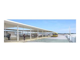 Le projet de modernisation de la gare de Namur vise à créer une intermodalité optimale en intégrant une gare d'autobus sur la dalle de couverture de la gare ferroviaire, conformément aux critères de rénovation des grandes gares. Une étude de faisabilité a été réalisée, abordant la stabilité, l'intégration urbaine et la mobilité, afin de garantir une interface efficace entre les différents modes de transport. Des solutions telles qu'un pont haubané et des accès sécurisés sont envisagées pour améliorer l'expérience des usagers.