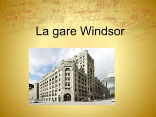 La gare Windsor, construite entre 1887 et 1889, est un site historique du Canada depuis 1975 et un monument provincial depuis 2009. Initialement conçue par l'architecte Bruce Price, elle a joué un rôle crucial dans l'expansion du Canadien Pacifique, bien qu'elle ait perdu ses fonctions principales aujourd'hui. Actuellement, elle abrite des restaurants, des hôtels et est reliée au métro souterrain.