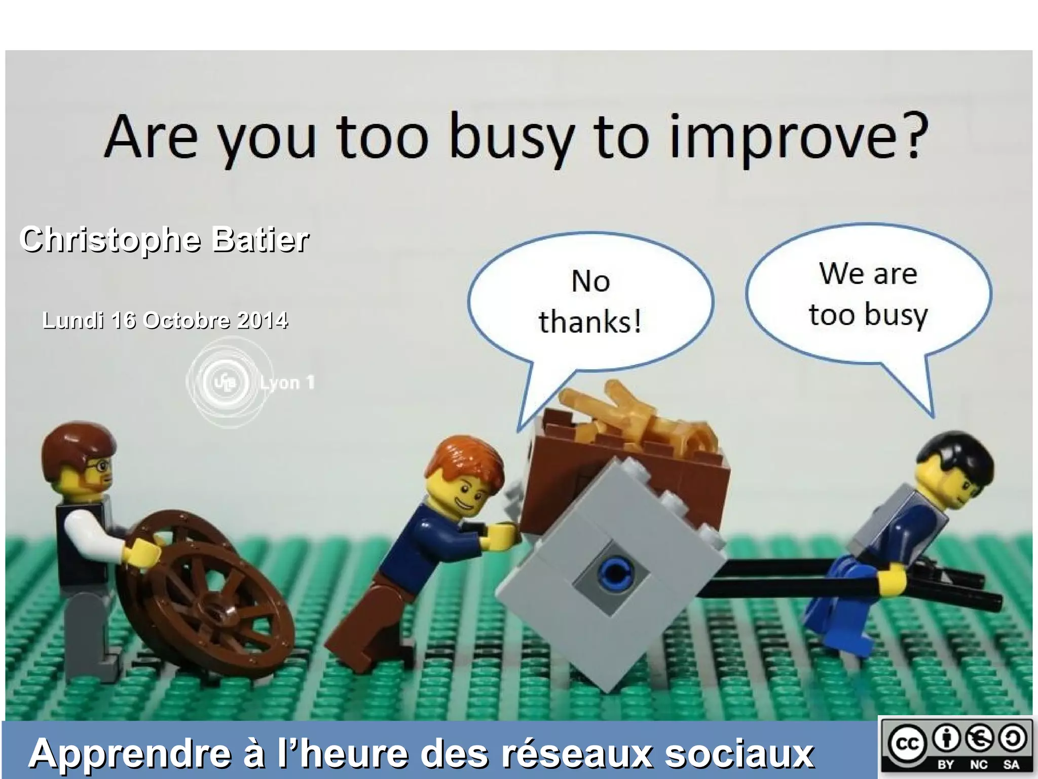 Ce document traite de l'apprentissage et de la motivation, en soulignant l'importance des perceptions des élèves dans leur engagement et leur persévérance. Il référence également divers outils et ressources numériques pour l'éducation, tels que les MOOC et les espaces d'apprentissage. Enfin, il aborde les droits d'auteur et les conditions de partage sous licence Creative Commons.