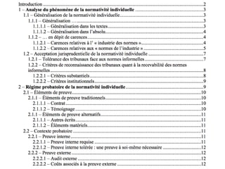 Le document analyse la normativité individuelle dans le cadre de la législation québécoise sur l'environnement et les normes de développement durable. Il aborde des cas jurisprudentiels sur l'acceptation de ces normes, comme celles établies par l'Initiative mondiale pour la durabilité, et discute de l'importance de la preuve et des usages connus des parties dans les contrats. Enfin, il souligne le contexte probatoire et les obligations du tribunal concernant le droit en vigueur au Québec.