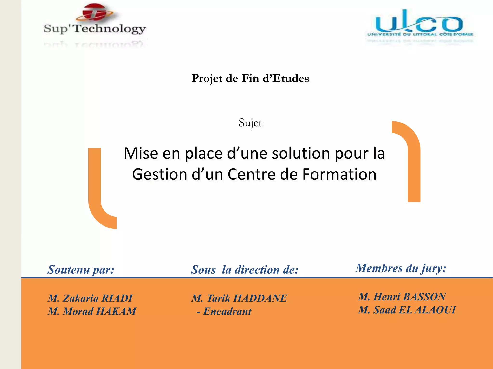 Le document présente un projet de fin d'études dédié à la mise en place d'une solution de gestion pour un centre de formation, incluant les aspects d'analyse, de conception et de mise en œuvre. Le système proposé comprend des fonctionnalités pour gérer les formations, les sessions, les apprenants, et les paiements, en visant différents acteurs tels que les centres de formation, administrations et entreprises. Les conclusions soulignent l'acquisition d'une première version opérationnelle et les perspectives d'enrichissement de la plateforme.