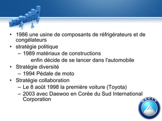 Geely, fondée par Jing Li et Juncheng Pan en 1986, a d'abord investi dans des composants de réfrigérateurs avant de se diversifier dans l'automobile en 1989. La marque a connu une croissance grâce à des stratégies de délocalisation et de partenariat, notamment l'acquisition de Volvo en 2010 pour 1,8 milliard de dollars. Les avancées technologiques ont été au cœur de ses développements, avec l'introduction de plusieurs innovations mécaniques entre 2002 et 2008.