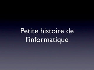 Le document retrace l'évolution de l'informatique depuis ses débuts, en passant par les différentes générations d'ordinateurs et les changements dans leur utilisation, de la centralisation à l'instauration de micro-ordinateurs accessibles aux utilisateurs. Il décrit également la transformation des systèmes d'information et le rôle croissant de l'ergonomie et des applications dans le travail quotidien des utilisateurs. Enfin, il aborde l'importance de la gestion des ressources et de l'accès à l'information au sein des entreprises.