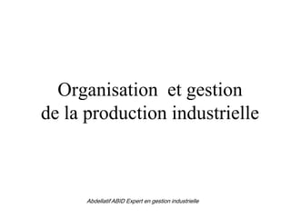Le document aborde les éléments fondamentaux de l'organisation et de la gestion de la production industrielle, en mettant l'accent sur les critères clés tels que le profit, le retour sur investissement et la gestion des ressources. Il traite également des différents systèmes de production, des flux de matériaux et d'informations, ainsi que des méthodes de planification et de maîtrise des stocks pour optimiser la production. Enfin, la gestion du temps et l'évaluation des capacités de production sont discutées comme des facteurs cruciaux pour minimiser le gaspillage et améliorer l'efficacité opérationnelle.