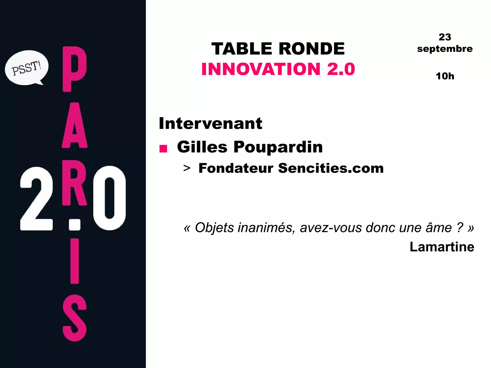 La table ronde du 23 septembre, animée par Gilles Poupardin, aborde la question de l'intelligence émotionnelle des objets inanimés et leur capacité à dialoguer avec les humains. L'événement explore également l'importance des émotions dans notre interaction avec les objets, alors que le futur des objets communicants reste incertain. Cette discussion s'inscrit dans le cadre d'une réflexion plus large sur l'évolution de la technologie et de notre rapport aux objets.