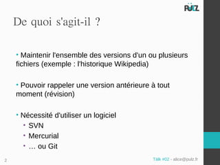 Le document présente les avantages de Git et des systèmes de gestion de versions, permettant de maintenir l'historique des fichiers et de travailler en équipe. Il décrit également les trois états des fichiers dans Git, ainsi que les opérations de base comme cloner un dépôt, indexer des fichiers, et fusionner des branches. Enfin, il mentionne des plateformes pour héberger des dépôts Git, comme GitHub et GitLab.