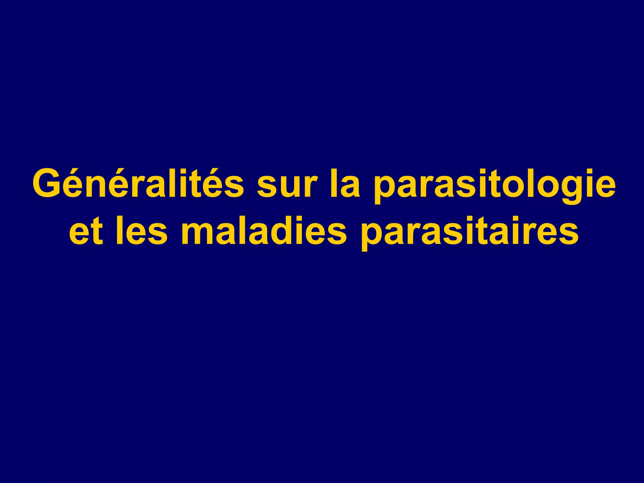 Le document traite de la parasitologie médicale, définissant les parasites, leurs modes de parasitisme et les différents types de parasites. Il aborde également les interactions entre hôtes et parasites ainsi que les pathologies parasitaires associées. De plus, il couvre la classification des parasites et les mesures prophylactiques pour lutter contre les infections parasitaires.