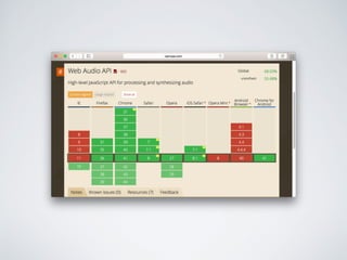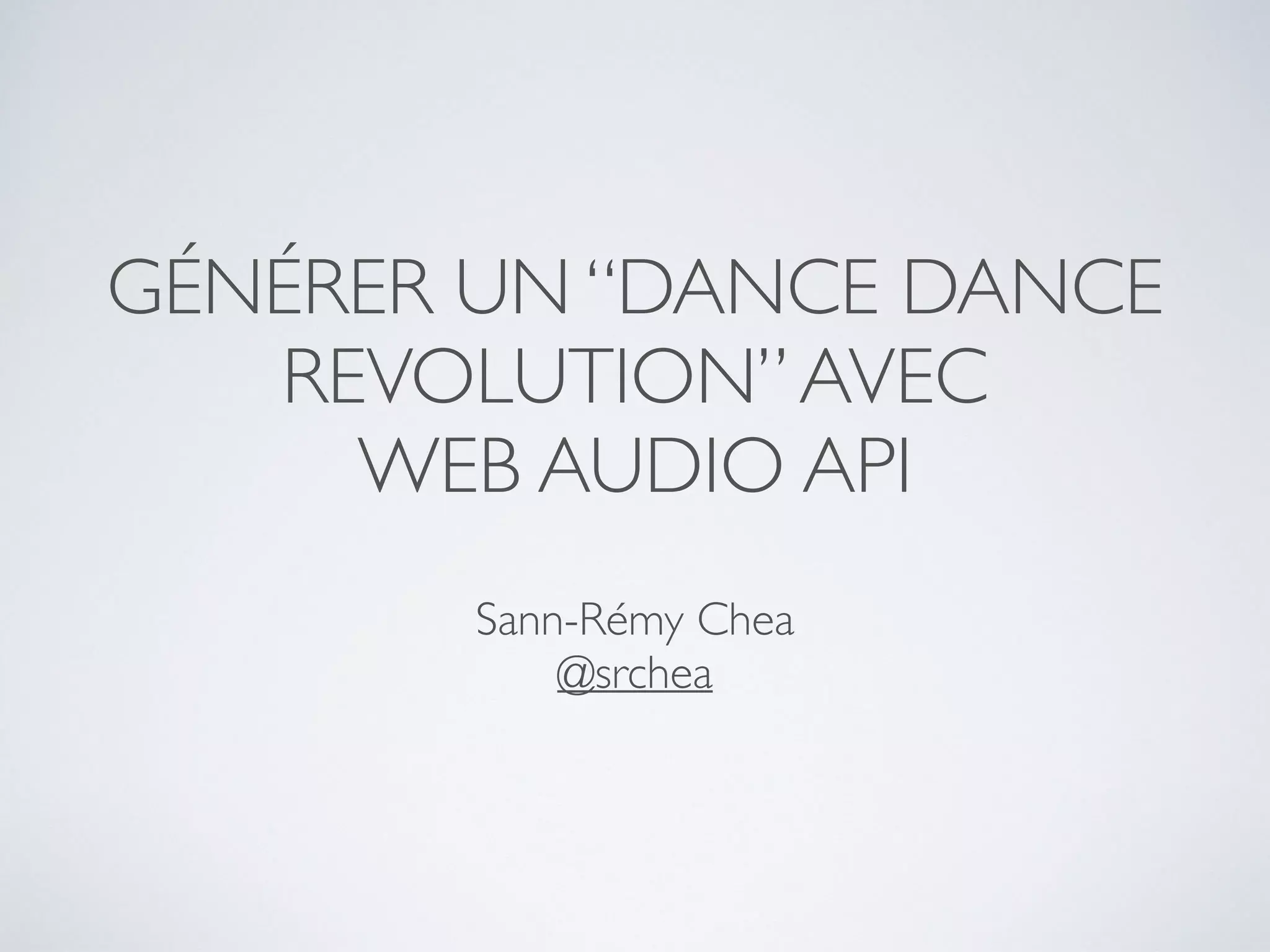 Le document explique comment créer un jeu de type 'Dance Dance Revolution' en utilisant l'API Web Audio. Il aborde l'historique, les fonctionnalités de l'API et son application dans le gameplay, notamment le calcul de pulsations à partir de données audio. Plusieurs applications utilisant l'API sont également mentionnées, ainsi que des méthodes pour générer des flèches et des animations.