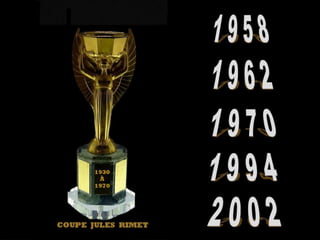 Le document retrace les victoires de la sélection brésilienne de football en Coupe du Monde, notamment en 1958, 1962, 1970, 1994 et 2002. Il met en avant des joueurs emblématiques comme Pelé, Garrincha, Romário et Ronaldo, tout en détaillant les résultats des matchs de chaque édition. Le parcours et les statistiques illustrent la domination historique du Brésil dans le football mondial.