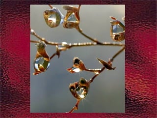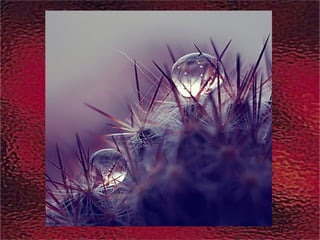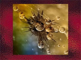 Le document présente des photos de gouttes de pluie capturées avec une caméra numérique spéciale. Ces images ont été réalisées juste après une averse. La musique d'accompagnement est 'Adagio' de Secret Garden.