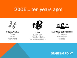 Le document aborde l'évolution des communautés d'apprentissage et l'impact de Web 2.0 sur l'éducation et l'apprentissage en ligne. Il discute des outils Web 2.0 pour la collaboration et l'interaction dans l'enseignement, soulignant l'importance d'une approche différenciée et d'apprentissage multimodal. Le texte présente également des exemples pratiques d'intégration des ressources numériques dans l'enseignement des langues.