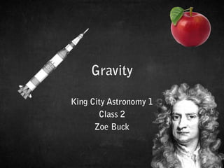 #5 So lets look at gravity through Newton’s laws. Gravity is something that changes somethings velocity, so if the apple is floating through space and it gets near a planet, the gravity of that planet will change the objects velocity, maybe even pull it in.Gravity makes a mass, like this apple, accelerate toward the object with the gravity.And finally, every action has an equal and opposite reaction….so if the Earth is pulling on this apple, the apple must be pulling on the Ear th! And it IS. We are each pulling on the Earth with the same force of gravity it is pulling on us. So gravity is a force between 2 objects, ANY two objects.