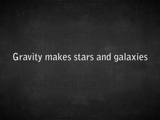 #19 In fact, gravity is the reason that there are galaxies and stars at all! Stars are formed when gas is attracted to other gas by gravity, and galaxies are formed when stars are attracted to each other, and to black holes, and to more gas, all by gravity!