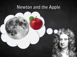 #9 So lets get back to Newton and the apple. What is the difference between the Moon, and an apple falling from a tree? Are they both governed by the same force? He decided that THEY ARE! They are both governed by gravity. What Newton realized is that both the apple and the Moon are in free fall.Radiolab episode?http://www.radiolab.org/2012/feb/20/edge-heavens/36 seconds