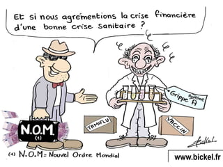 Le document aborde des préoccupations concernant la propagation d'un virus de grippe selon l'OMS et suggère des théories de complot liées aux vaccins. Il mentionne une possible obligation de vaccination en France et interroge la capacité de la population à accepter cette situation. Malgré ces craintes, il appelle à une perspective optimiste et insiste sur la puissance de la pensée positive.