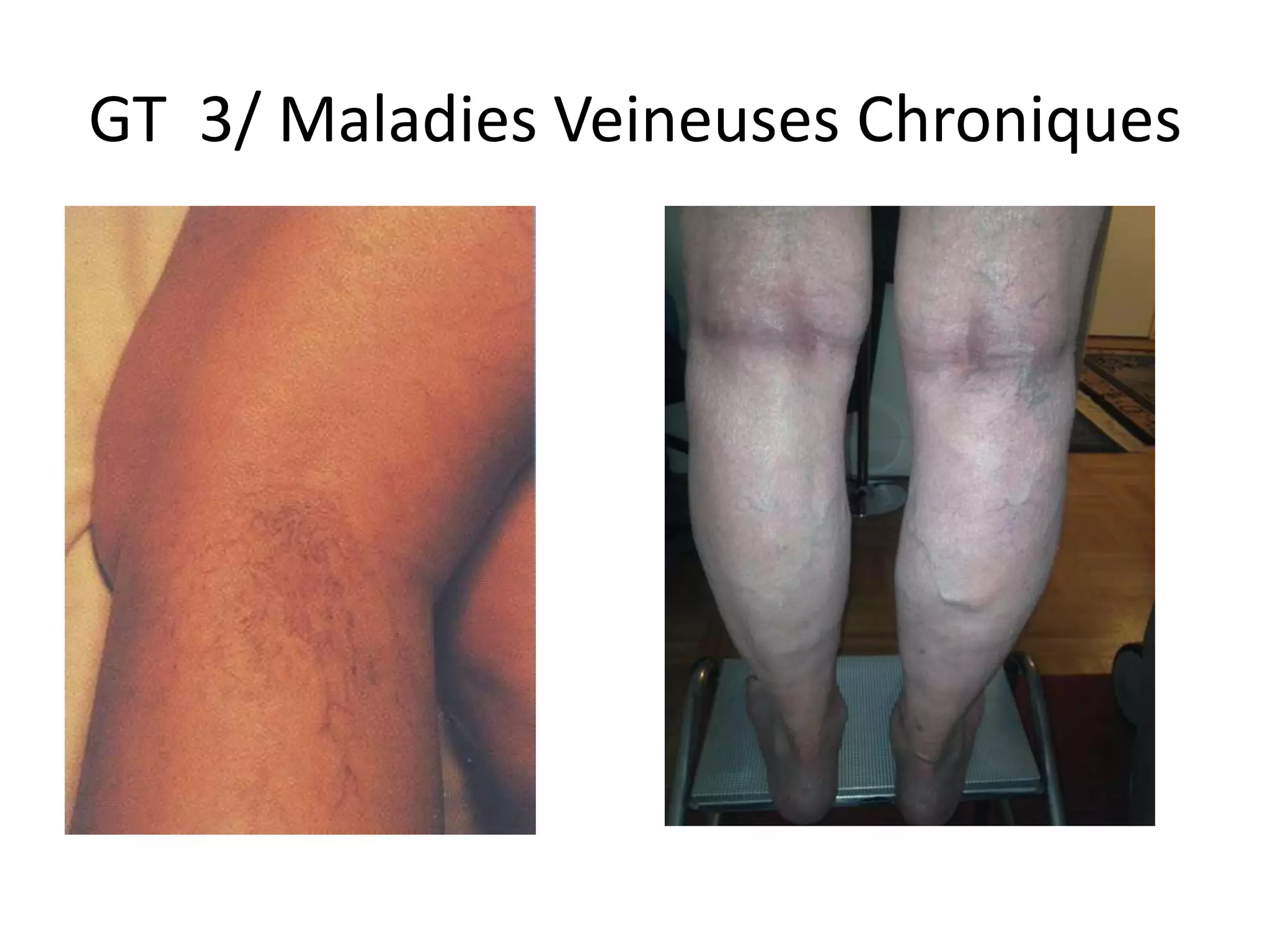 Le document traite des maladies veineuses chroniques (MVC) et présente les travaux réalisés en 2013 par divers experts. Il aborde des thèmes tels que l'épidémiologie, les explorations vasculaires, les classifications, les recommandations, la prévention et les progrès thérapeutiques. Des méthodes de recherche liées aux MVC sont également mentionnées, en référence à d'autres groupes de travail.