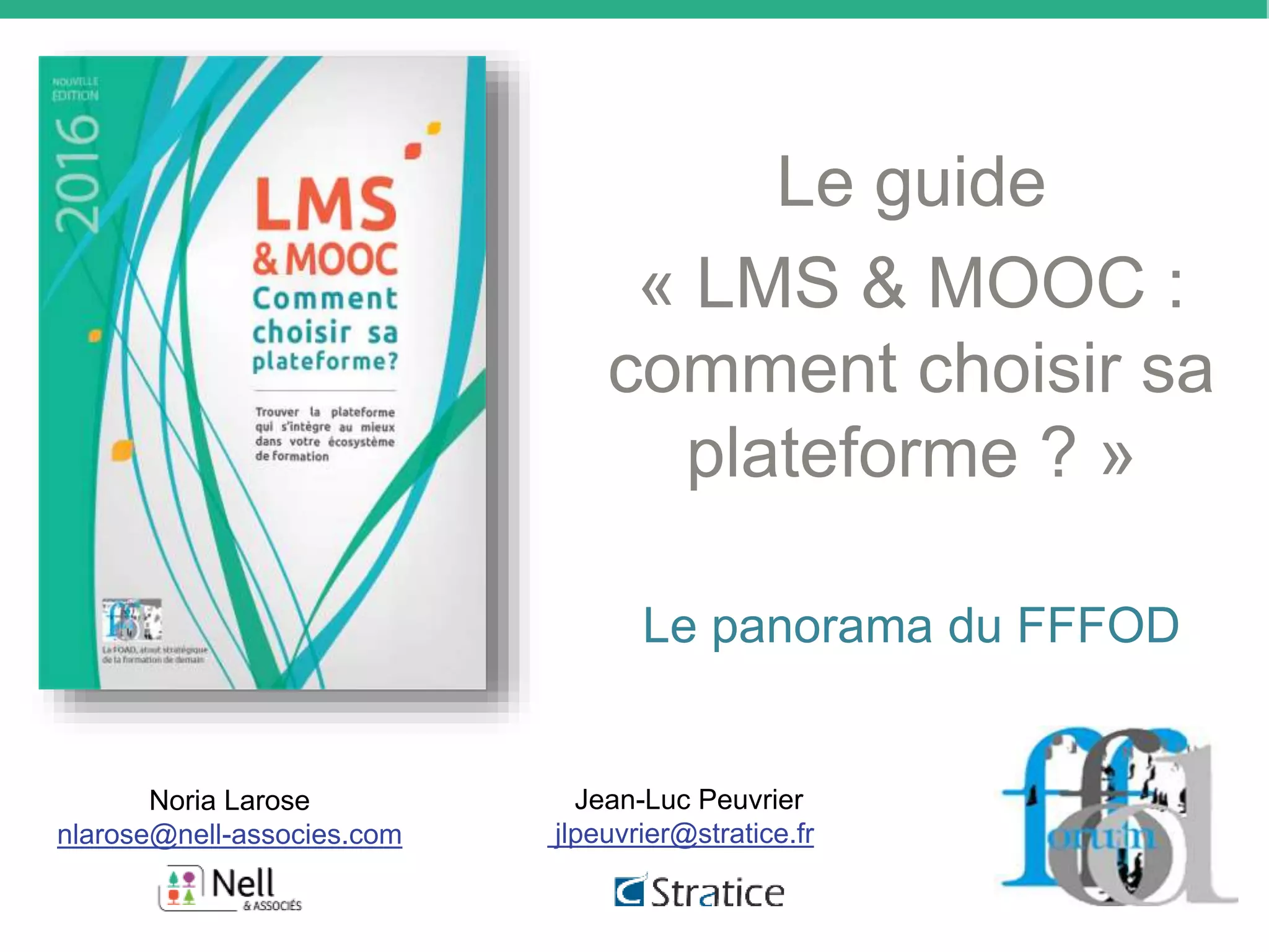 Le guide 'LMS & MOOC : comment choisir sa plateforme ?' vise à aider les entreprises et organismes à choisir des plateformes adaptées à la formation à distance. Il présente un panorama des plateformes LMS, tant commerciales qu'open source, ainsi que des tendances actuelles dans le domaine des MOOC. Ce guide, produit par le fffod, a été téléchargé par plus de 2000 personnes en un an et contient des recommandations basées sur des bonnes pratiques en e-learning.