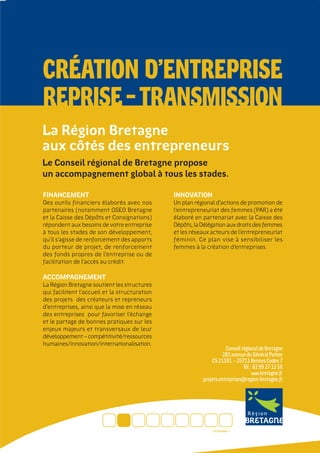 Ce guide, publié par la chambre de commerce et d'industrie de Bretagne, accompagne les entrepreneurs dans la création ou la reprise d'entreprise en fournissant des conseils et des étapes clés, tels que l'étude de marché et la préparation du plan d'affaires. Les futurs chefs d'entreprise peuvent bénéficier de services d'accompagnement, de formations et d'une démarche qualité assurée. Il souligne également l'importance de bien se préparer et de prendre en compte les contraintes et exigences juridiques liées à l'entrepreneuriat.