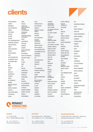 Renault Consulting se spécialise dans l'amélioration de la performance des entreprises à travers une approche personnalisée et une vaste expérience acquise auprès de plus de 900 clients. En offrant des solutions basées sur des méthodes éprouvées, l'entreprise s'engage à optimiser la rentabilité et la satisfaction client dans divers secteurs d'activité. Sa méthodologie repose sur un transfert de compétences efficace afin de rendre les clients autonomes dans leurs démarches d'amélioration continue.