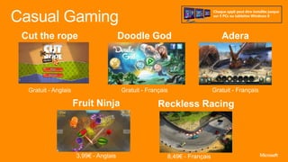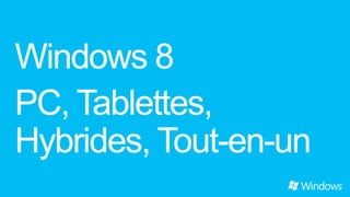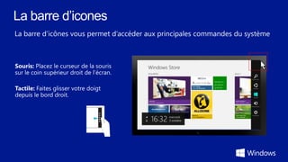 Ce guide présente les fonctionnalités de Windows 8, mettant en avant sa personnalisation, sa rapidité, et sa connectivité à travers des outils comme Skydrive et Xbox Music. Il explique également comment créer un compte Microsoft et synchroniser des applications et fichiers sur différents appareils. Enfin, il fournit des instructions pratiques pour naviguer et optimiser l'utilisation de l'interface tactile et classique de Windows 8.