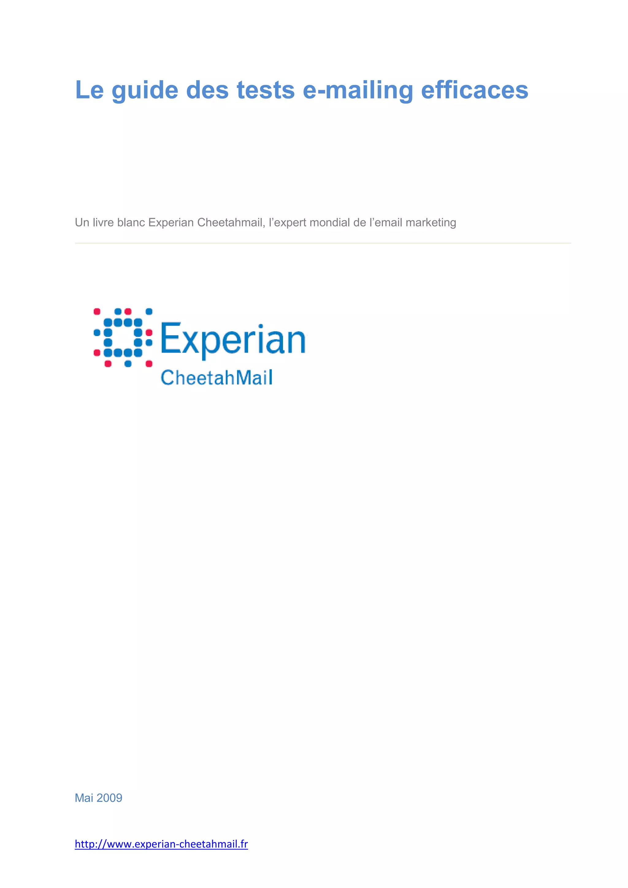 Le guide d'Experian CheetahMail fournit des bonnes pratiques pour l'optimisation des campagnes emailing à travers des tests méthodiques. Malgré leur efficacité prouvée, de nombreux marketers négligent de réaliser des tests, ce qui peut entraîner des pertes d'opportunités. Le document propose des conseils sur la mise en place de tests à court et long terme, ainsi que des exemples pratiques pour améliorer les performances des campagnes emailing.