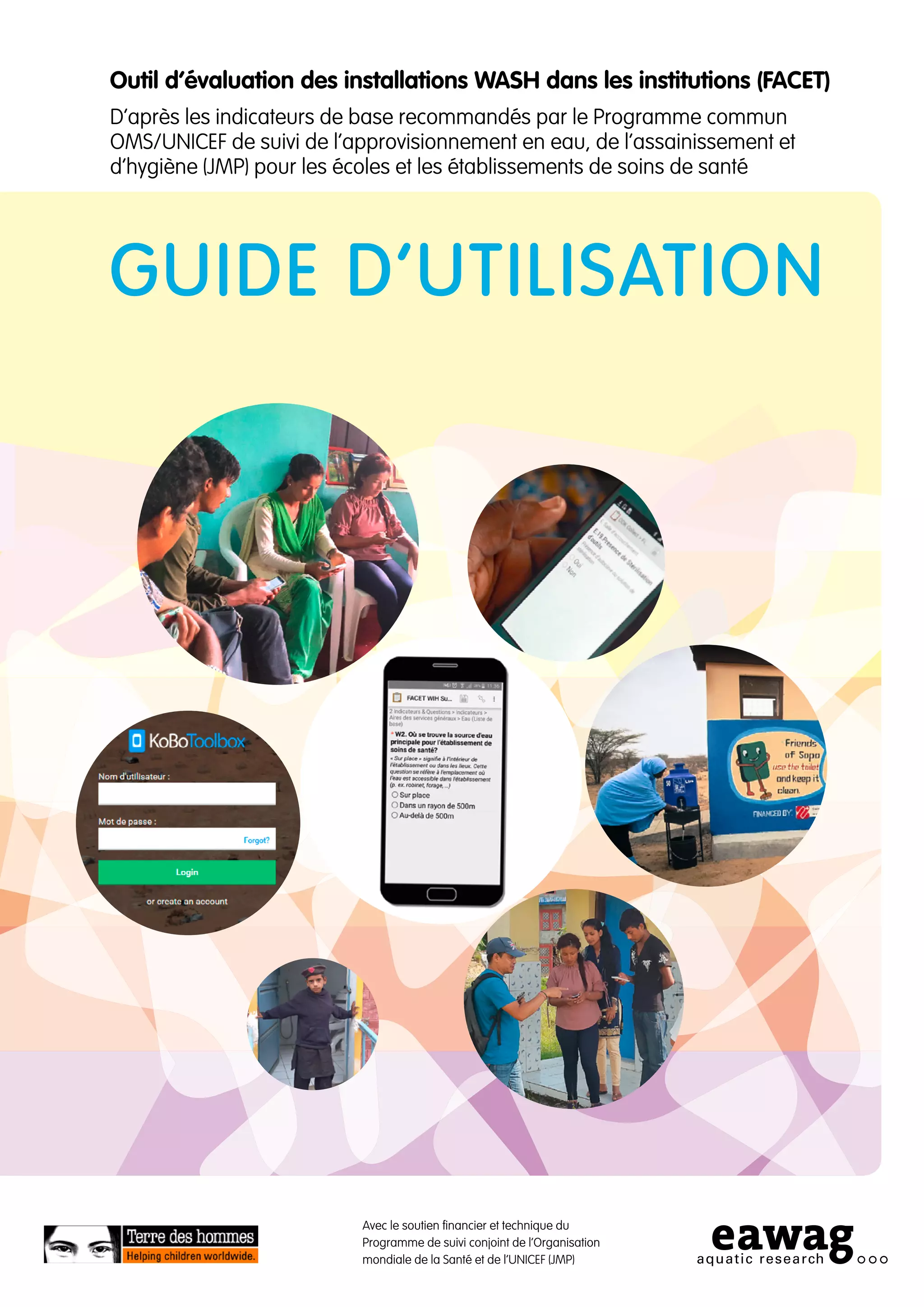 Le document présente l'outil d'évaluation des installations WASH dans les institutions (FACET), développé pour améliorer le suivi des services d'eau, d'assainissement et d'hygiène dans les écoles et les établissements de soins de santé. Il fournit des méthodes de collecte et d'analyse de données sur mobile, soutenues par des indicateurs mondiaux adaptés aux contextes institutionnels, afin de répondre aux exigences des Objectifs de Développement Durable. Ce guide sert de manuel d'instruction pour les praticiens impliqués dans la mise en œuvre de ces évaluations.
