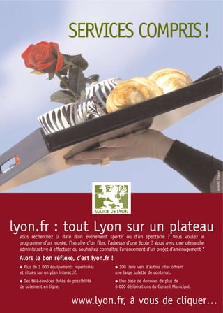 Le guide 'Internet pour tous' de Lyon, édition 2006, présente les initiatives de la ville pour faciliter l'accès à Internet pour tous ses habitants, en soutenant des lieux déjà existants tels que les bibliothèques et centres sociaux. Lyon a obtenu le label 'ville internet @@@@' pour sa politique numérique. Le guide recense également divers endroits et services permettant de se former à l'usage des technologies numériques.