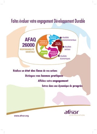 Le document souligne l'urgence d'un développement durable face aux crises économiques, sociales et environnementales. Il appelle à réconcilier l'homme avec la nature et à impliquer les entreprises dans cette transition vers une économie verte. Le texte présente également des conseils pratiques pour aider les entreprises à intégrer des démarches responsables et à participer à des initiatives de développement durable.