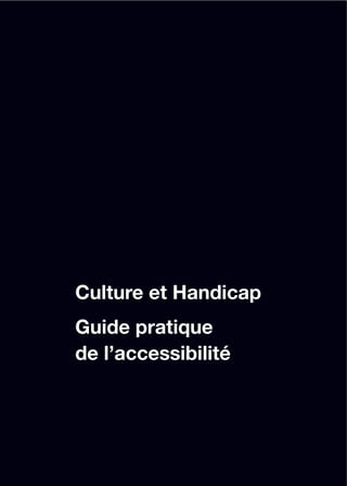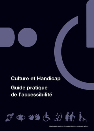 Le guide pratique de l'accessibilité du ministère de la culture et de la communication vise à améliorer l'accès à la culture pour les personnes handicapées en fournissant des conseils et recommandations aux professionnels du secteur culturel. Il s'inscrit dans un plan national visant à garantir les droits des personnes handicapées et leur accès à des biens culturels variés. Ce document aborde divers enjeux d'accessibilité en détaillant des bonnes pratiques et les collaborations nécessaires pour optimiser l'accueil des personnes en situation de handicap.