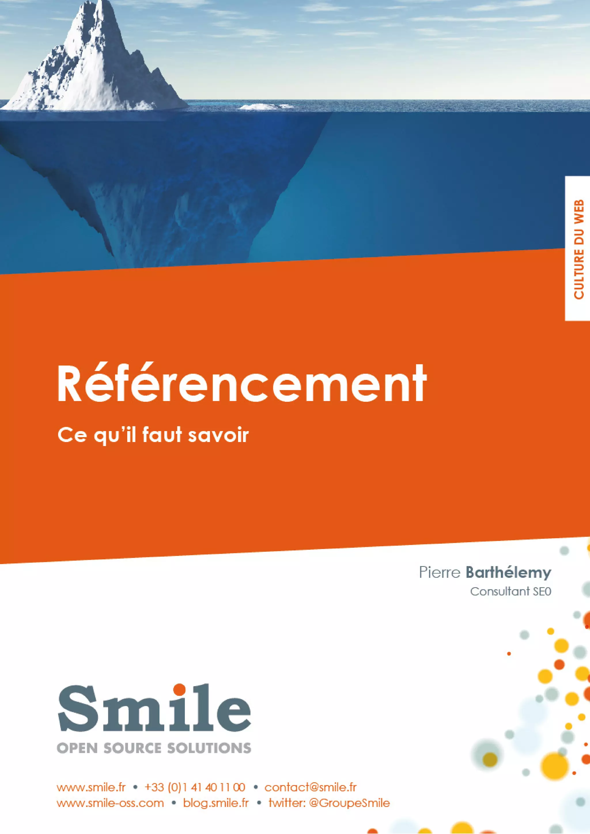 Smile est une société spécialisée dans l'intégration de solutions open source avec plus de 600 collaborateurs, principalement en France. Elle offre une gamme de services incluant le consulting, le développement graphique et le support applicatif, et a collaboré avec de nombreux clients renommés dans divers secteurs. Ce document présente les principes fondamentaux du référencement, soulignant qu'il s'agit d'un processus raisonné visant à accroître la pertinence et la visibilité des sites sur les moteurs de recherche.