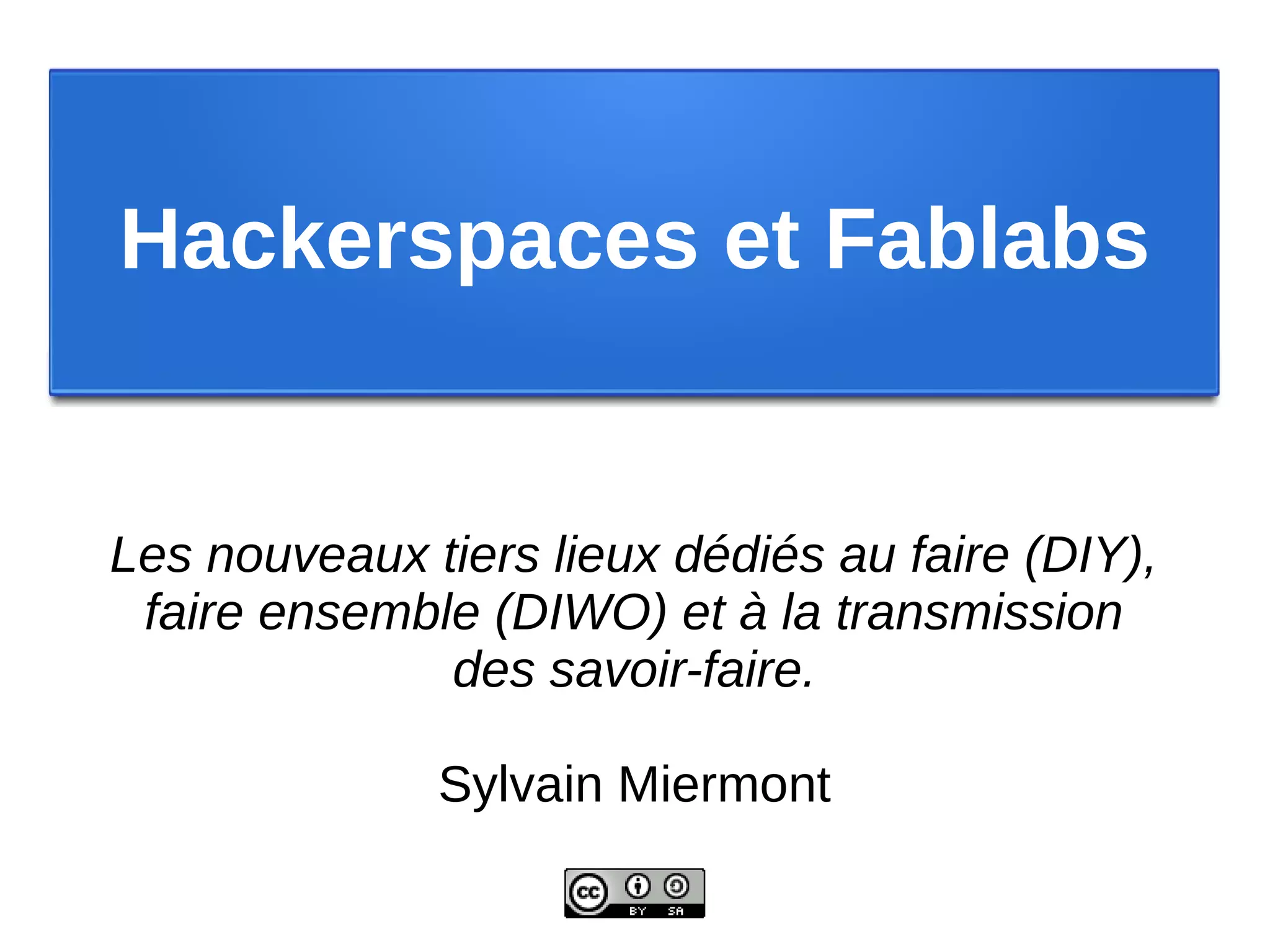 Le document présente les hackerspaces et fablabs comme des tiers-lieux favorisant le DIY (faire soi-même) et la collaboration. Il décrit leur historique, leur impact social, et souligne l'importance de l'apprentissage par la pratique et de la transition vers un modèle industriel ouvert et participatif. Enfin, il évoque leur rôle potentiel dans la diffusion des sciences et techniques au sein de la société.