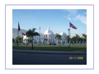 Le document exprime la douleur et la mélancolie face aux conséquences du séisme en Haïti, évoquant la beauté du pays tout en rappelant les images chocs de la tragédie. L'auteur appelle à l'action et à la gratitude envers ceux qui ont aidé Haïti, insistant sur la nécessité d'un changement collectif. Enfin, une série de photos accompagne le texte pour soutenir le message d'espoir et de solidarité.