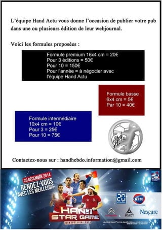 Le document présente les résultats et résumés des matchs de handball, notamment Créteil – Istres (24-24) et Aix – Toulouse (26-31), ainsi que les réactions des joueurs Julien Rebichon et Baptiste Bonnefond. On y trouve également des classements, des performances individuelles des joueurs et des analyses des matchs précédents. De plus, des informations sur les prochaines journées et les enjeux de maintien sont abordées.