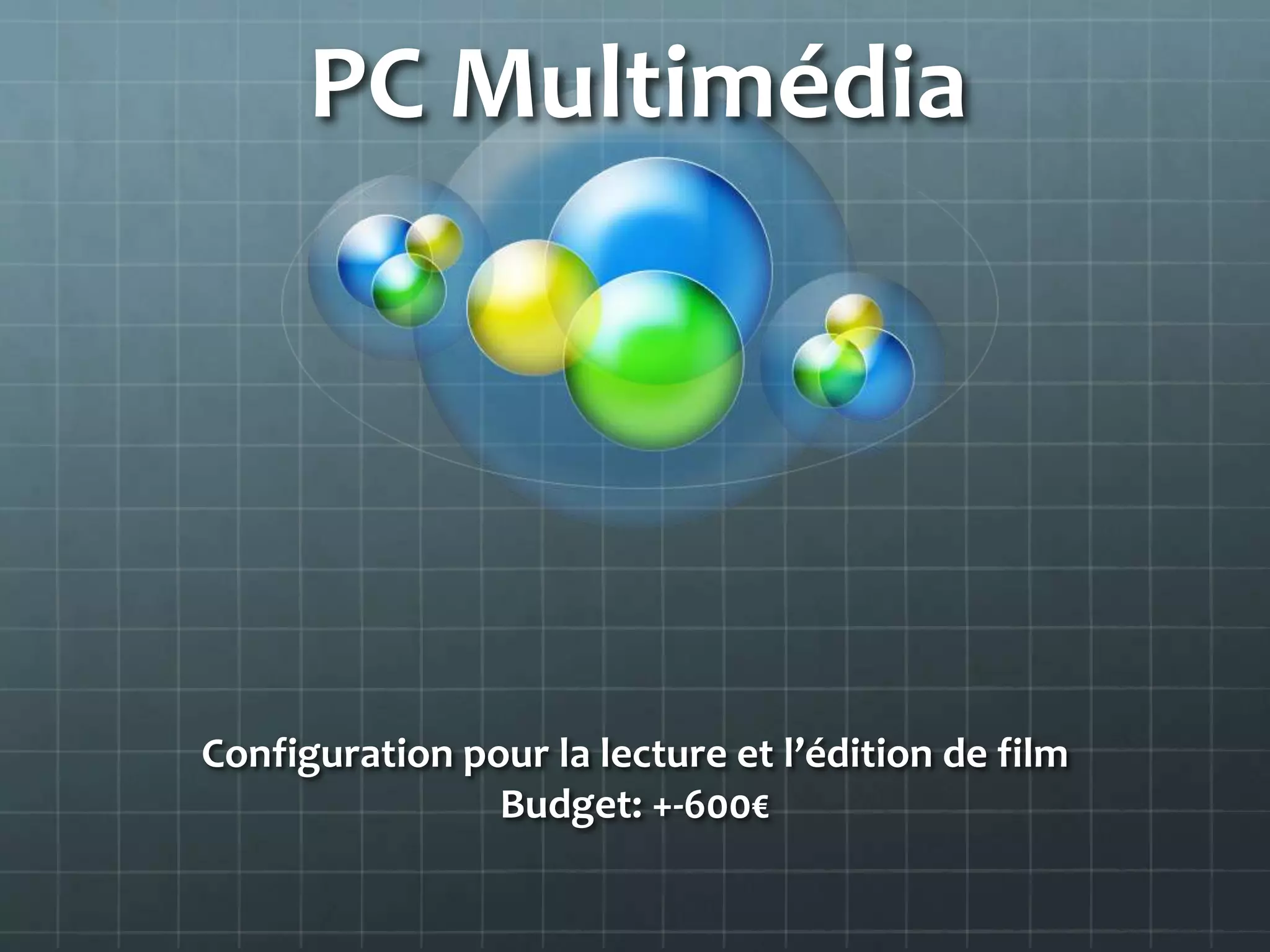 Ce document présente la configuration d'un PC multimédia destiné à la lecture et l'édition de films, avec un budget d'environ 600€. Il détaille la liste des composants sélectionnés, y compris la carte mère, le processeur, la mémoire RAM et l'écran, ainsi que leurs prix respectifs. Le coût total des composants s'élève à 549,60€, avec des recommandations pour l'achat sur des sites spécifiques.
