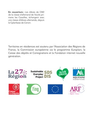Le document décrit un projet de résidence créative sur les Hauts-de-Garonne, impliquant des collaborations entre designers, sociologues et habitants pour développer des politiques publiques innovantes. La méthodologie inclut une immersion de trois semaines, combinant analyses, prototypage, et ateliers participatifs, dans le cadre d'une démarche de co-construction. Ce programme vise à réinvestir le territoire et à faciliter l'émergence d'initiatives locales grâce au numérique, notamment via des outils participatifs du web 2.0.