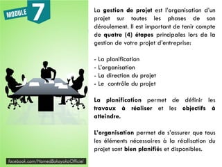 La gestion de projet implique quatre étapes clés : la planification, l'organisation, la direction et le contrôle, tout en adoptant une approche agile pour s'adapter aux contraintes. Une budgétisation précise est essentielle, et le projet doit être défini selon des critères SMART. L'expérience est cruciale, il est donc conseillé de se faire accompagner par des experts.