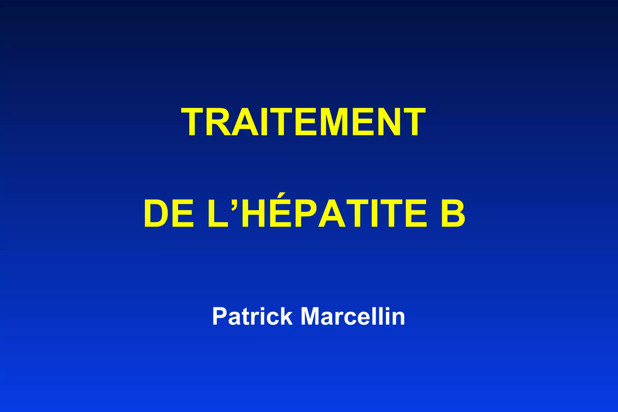 L'hépatite B touche environ 0,7 % de la population française, avec des conséquences graves comme la cirrhose et le cancer hépatocellulaire. Le traitement vise à réduire la charge virale et les complications, et comprend des options telles que l'interféron et les analogues nucléos(t)idiques. Les recommandations de traitement varient selon le stade de la maladie, la réponse immunitaire et les caractéristiques des patients.