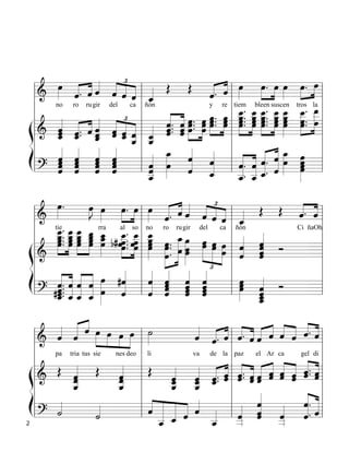 Le document présente les paroles du hymne national mexicain, écrit par Francisco González Bocanegra et composé par Jaime Nunó. Il évoque des thèmes de paix, de patriotisme et d'unité nationale. Le contenu est principalement musical, sans éléments narratifs explicites.
